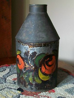 Antique Primitive Painted Tin Tole Toleware Tea Cannister