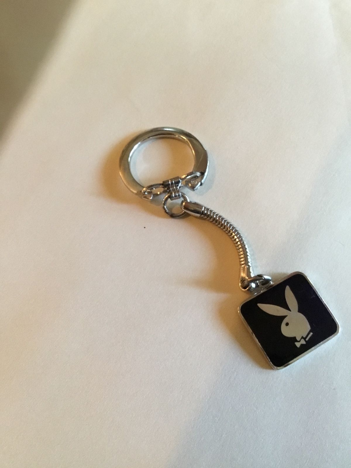 Title (ebay affiliate link): Vintage Playboy Bunny Key Ring Key Chain, Chrome and Black Enamel.