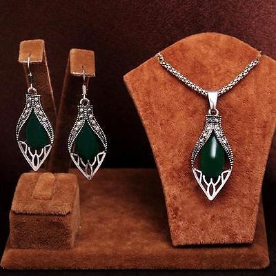 2PCS green bead Design antique silver Necklace eardrop Jewelry Set Women''s gift