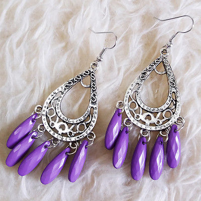 Title (ebay affiliate link): Vintage Women Bohemian Antique Hollow Plate Purple Teardrop Bead Dangle Earrings