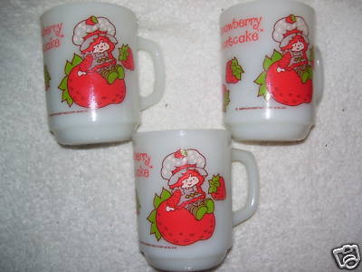 3 Milk Glass Strawberry Shortcake Coffee Mugs Cups 1980