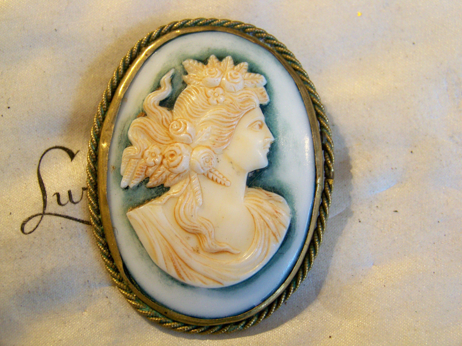 Title (ebay affiliate link): OLD VINTAGE JEWELLERY BEAUTIFUL MILK GLASS CAMEO PICTURE BROOCH SHAWL PIN