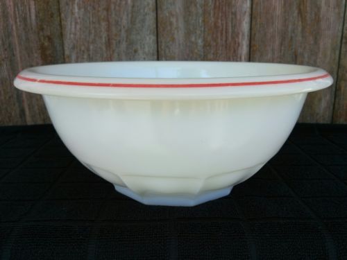 Title (ebay affiliate link): Vtg HAZEL ATLAS RED STRIPE rolled rim WHITE milk glass 10" diameter mixing bowl