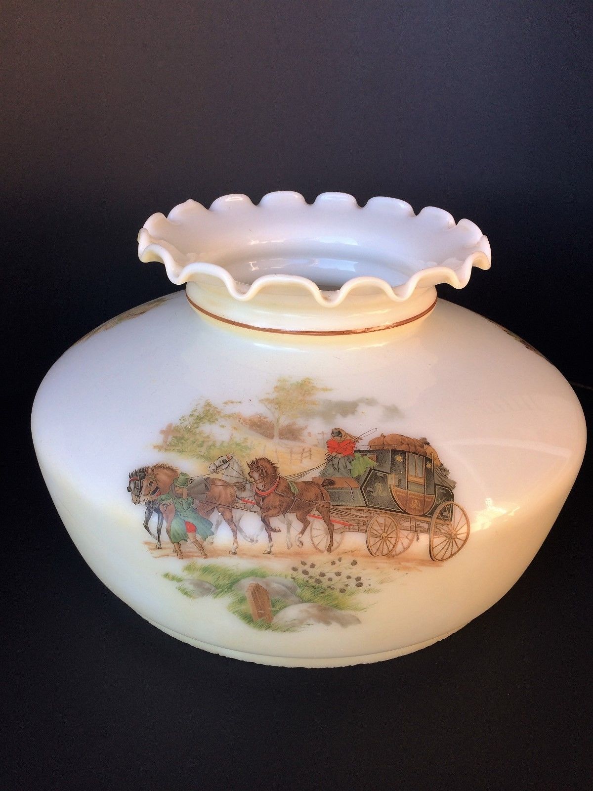 Title (ebay affiliate link): Vtg Milk Glass Lamp Shade with Quick Silver Royal Mail Coach 9 7/8" Fitter GWTW