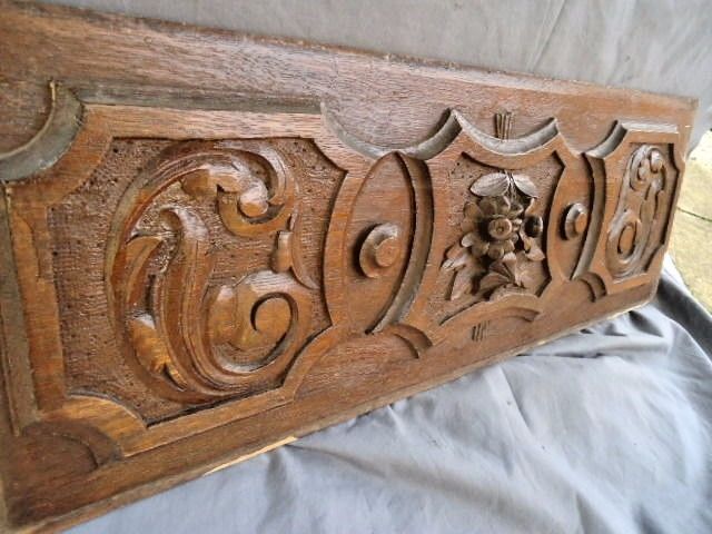 19TH CENTURY CARVED OAK PANEL SCROLLING FLOWERS