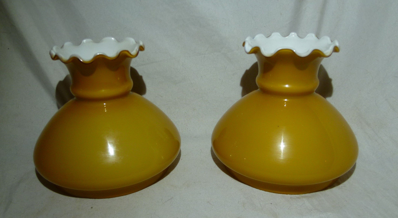 A PAIR OF VINTAGE GLASS OIL LAMP SHADE