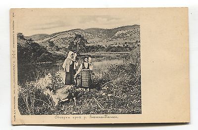 Russia or Eastern Europe - peasant women & goat - early postcard