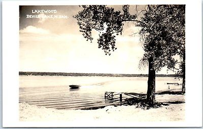 Title (ebay affiliate link): North Dakota RPPC Real Photo Postcard LAKEWOOD Lake Boat Landing Scene c1950s