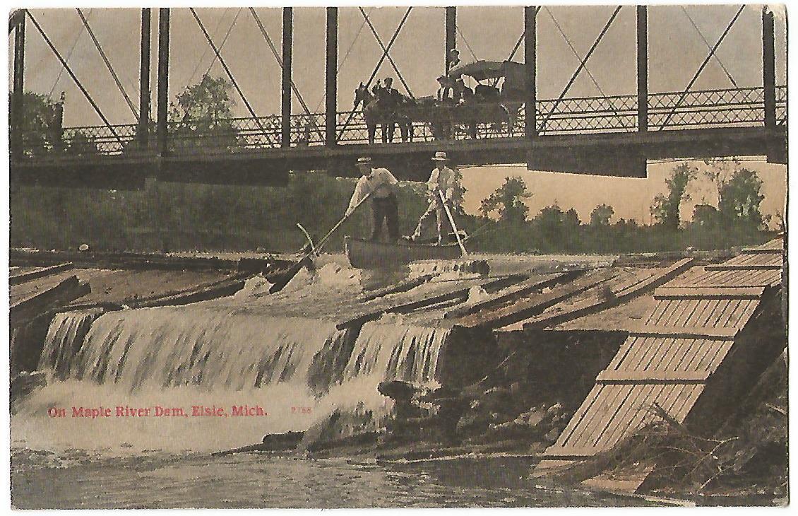 Elsie Michigan MICH MI (Clinton County) Maple River Dam & Steel Bridge 1909