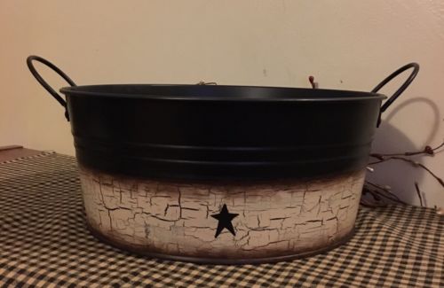 Title (ebay affiliate link): PRIMITIVE CRACKLE WASH PAN NO WOOD BLACK TAN COUNTRY FARMHOUSE DECOR TIN