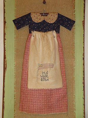 Primitive Doll Dress-Folkart-Handmade Stitchery-Home Decor-Grungy-Patriotic