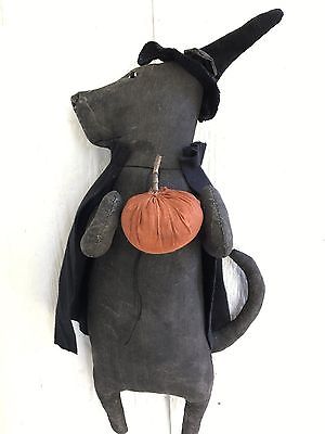 Primitive grungy halloween witchy doll dog labradore door hanger tuck