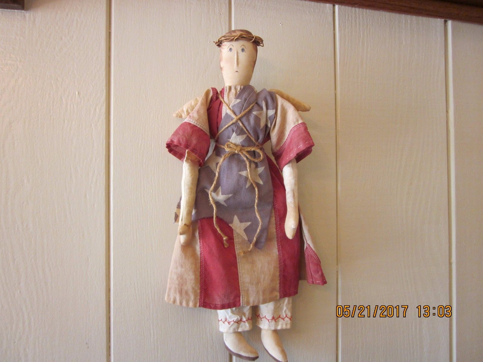 Title (ebay affiliate link): Primitive Americana Liberty Flag Patriotic July 4 Hand Painted Angel Doll Signed