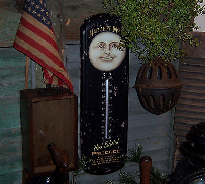 Title (ebay affiliate link): Primitive Antique Vtg Style Halloween Harvest Man Moon Thermometer Sign Tin
