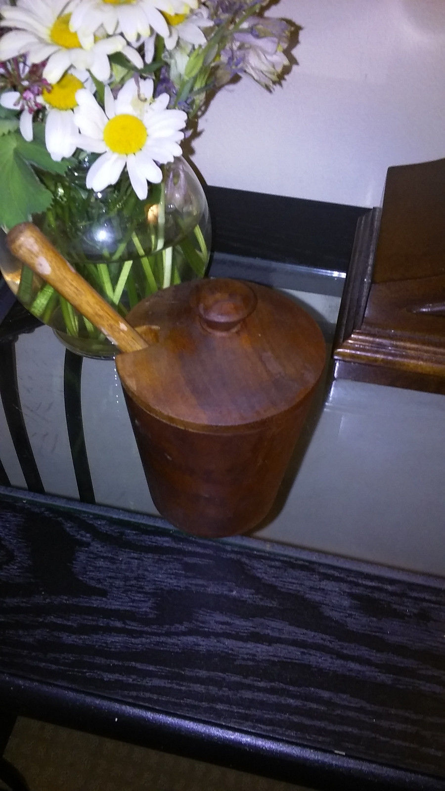 Title (ebay affiliate link): Vintage Ohio TREENWARE WOODEN Hand Turned Honey Jar/pot