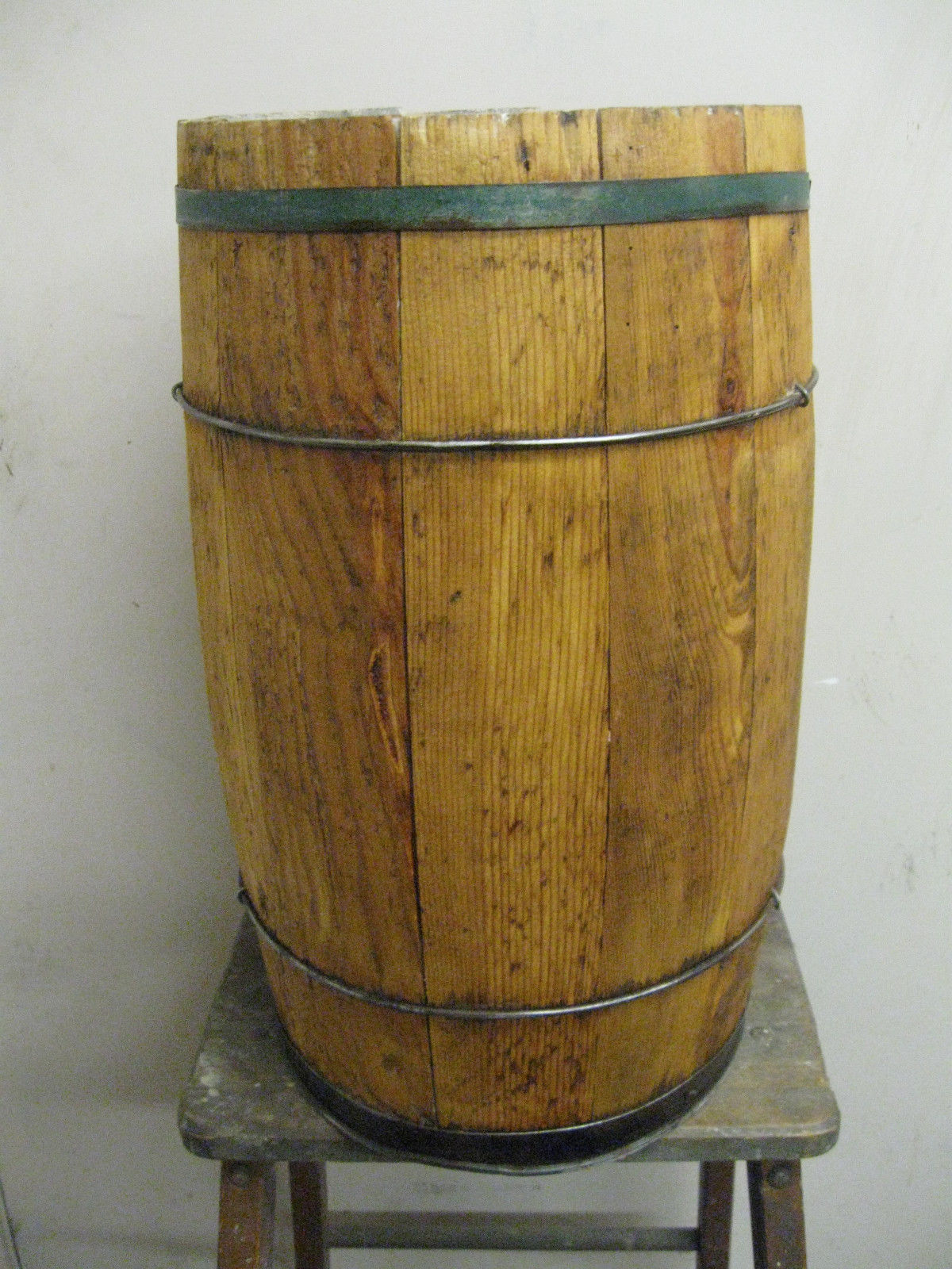 Vintage Wooden Nail Barrel Wire Ring Keg