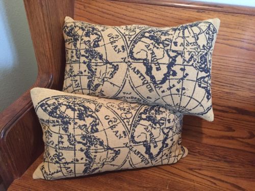 Title (ebay affiliate link): Set Of 2 OLD WORLD PILLOW-MAP-Farmhouse Style Decor- BURLAP- 12x20