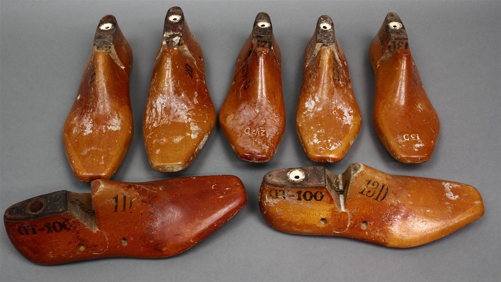 Lot of 7 Wooden Shoe Factory Industrial Molds Lasts 2D - 11D - 12-1/2D - 13-D