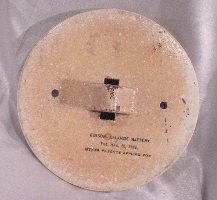 Title (ebay affiliate link): Antique Crock Lid Edison Lalande Battery Patent 1883 Stoneware Top Advertising