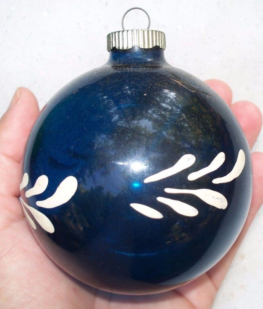 Title (ebay affiliate link): JUMBO! VINTAGE COBALT BLUE HAND PAINTED SHINY BRITE GLASS CHRISTMAS ORNAMENT