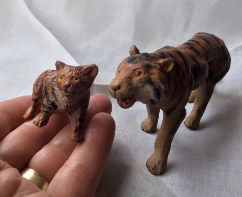 Title (ebay affiliate link): Antique Vintage German Elastolin Tiger Cat & Cub Creche Nativity Xmas Putz Toy