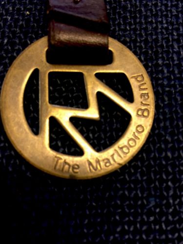 VINTAGE BRASS & LEATHER THE MARLBORO BRAND KEY CHAIN RING FOB PROMO USA