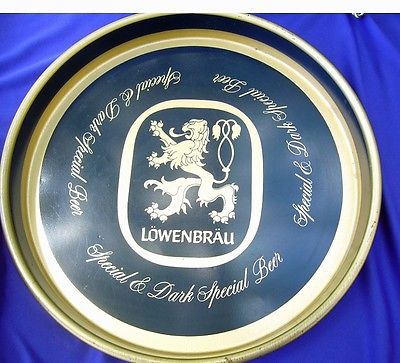 Title (ebay affiliate link): Lowenbrau Beer Round Metal Tray Black & Gold "Special & Dark Beer" 13" DIa EX!