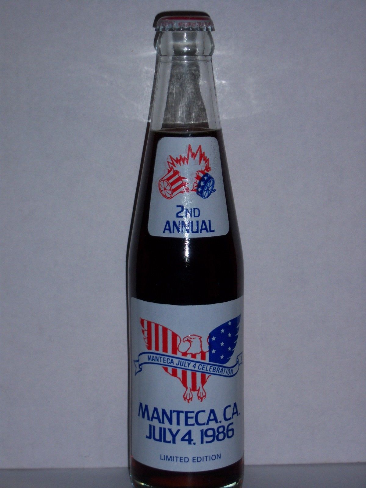 10 OZ COCA COLA COMMEMORATIVE BOTTLE - 1986 MANTECA CA 2ND ANNUAL JULY 4TH