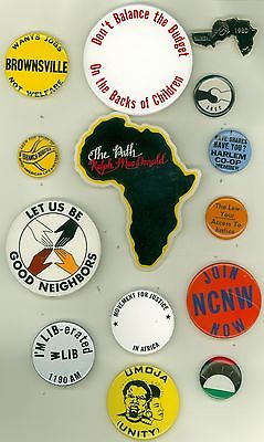 Title (ebay affiliate link): 14 Vintage 1970s-80s Black Civil Rights Africa Liberation Cause Pinback Buttons