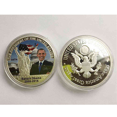Title (ebay affiliate link): US President Barack Obama Presidential Silver Eagel Plated Coins Gift