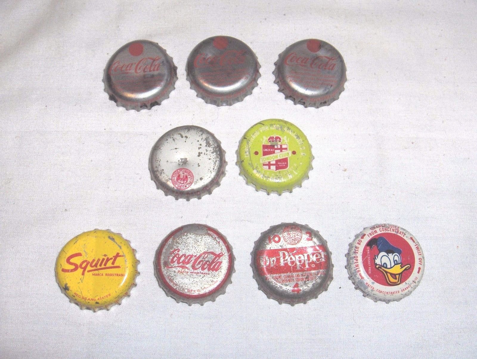 Title (ebay affiliate link): MS712 - 9-PIECE VINTAGE BOTTLE CAP COLLECTION - ASSORTED - COKE, DR. PEPPER
