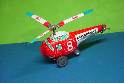 Vintage Tin Litho Friction Motor HELICOPTER NOS NICE