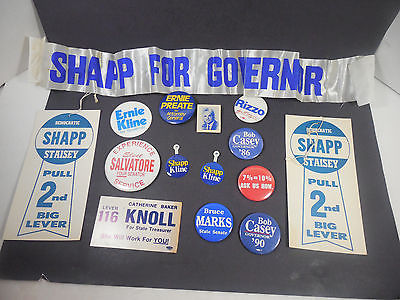 VINTAGE MIXED LOT POLITICAL PINS PAPER SIGNS MATCH BOOK PENNSYLVANIA SHAPP CASEY