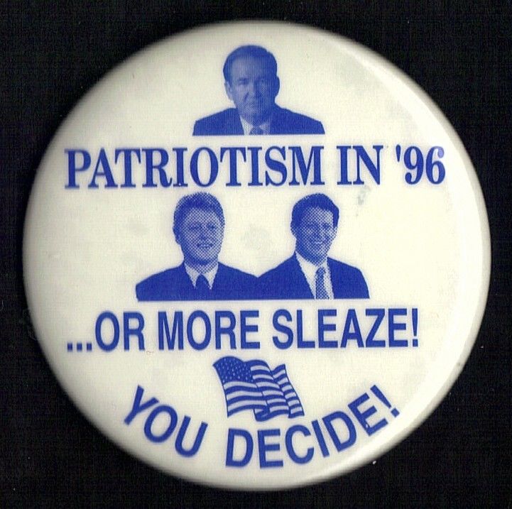 Title (ebay affiliate link): 1996 Pat Buchanan 2-1/4" / "Patriotism or More Sleaze" Campaign Button