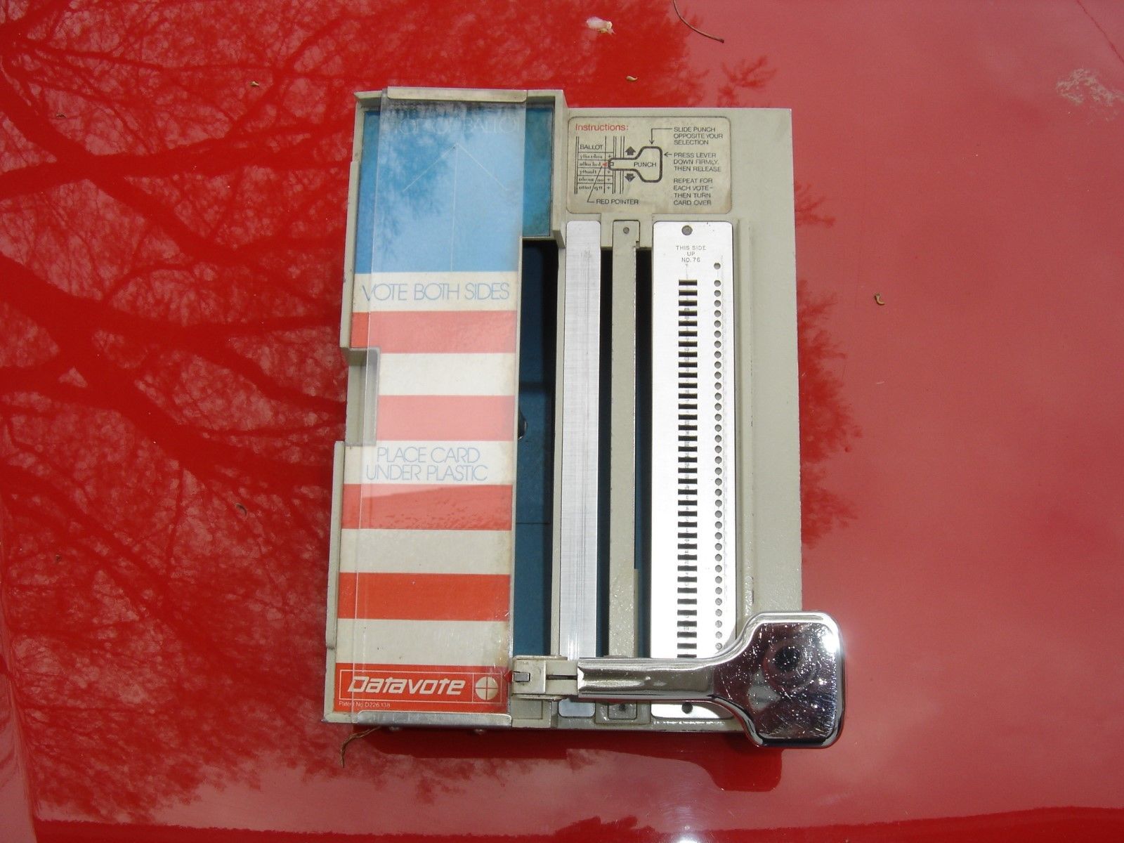 Title (ebay affiliate link): VINTAGE DATAVOTE HAND OPERATED VOTING MACHINE Used IBM ?? punch cards