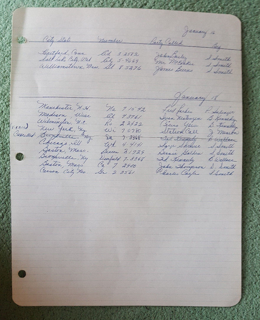 RFK Is Called for JFK His Personally Used Call Log Written by Mrs. Lincoln