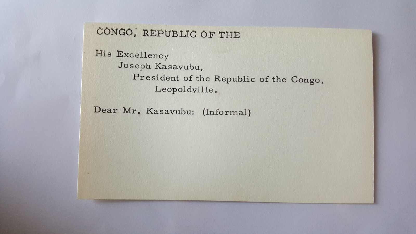 JFK ''s Personally Owned & Used "Call Card" for Republic Of The Congo