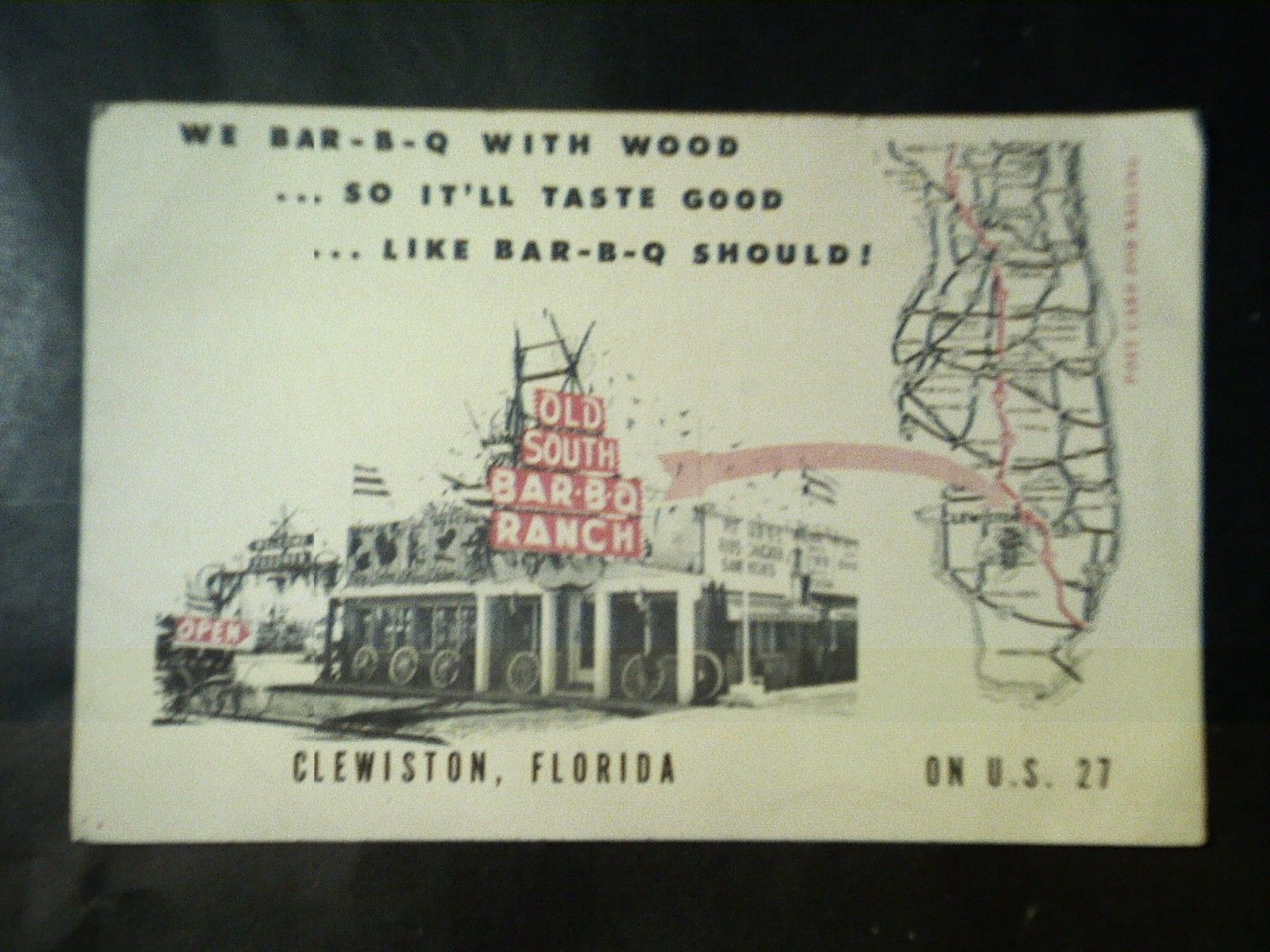 3 CENT STAMP LARGE VINTAGE Postcard Old South Bar B Q Ranch Clewiston Fl