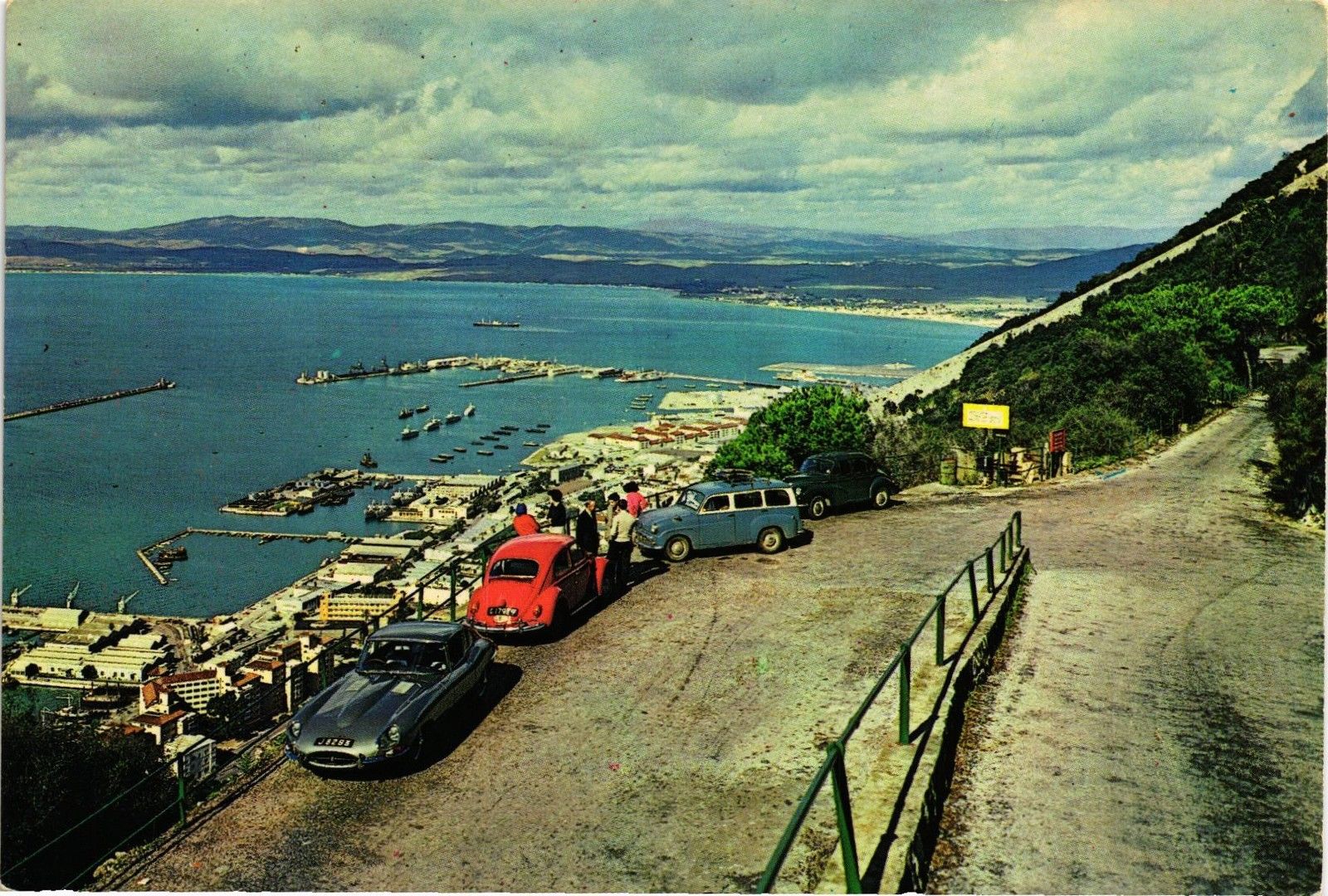 DR JIM STAMPS CLASSIC CARS VIEW OF TOWN AND HARBOUR GIBRALTAR OVERSIZE POSTCARD