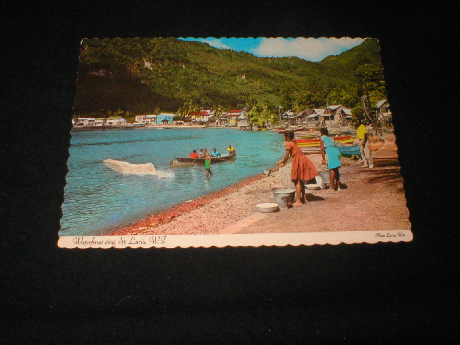 Title (ebay affiliate link): WEST INDIES SOUFRIERE St LUCIA People & Houses On The Waterfront ~ Postcard 1964