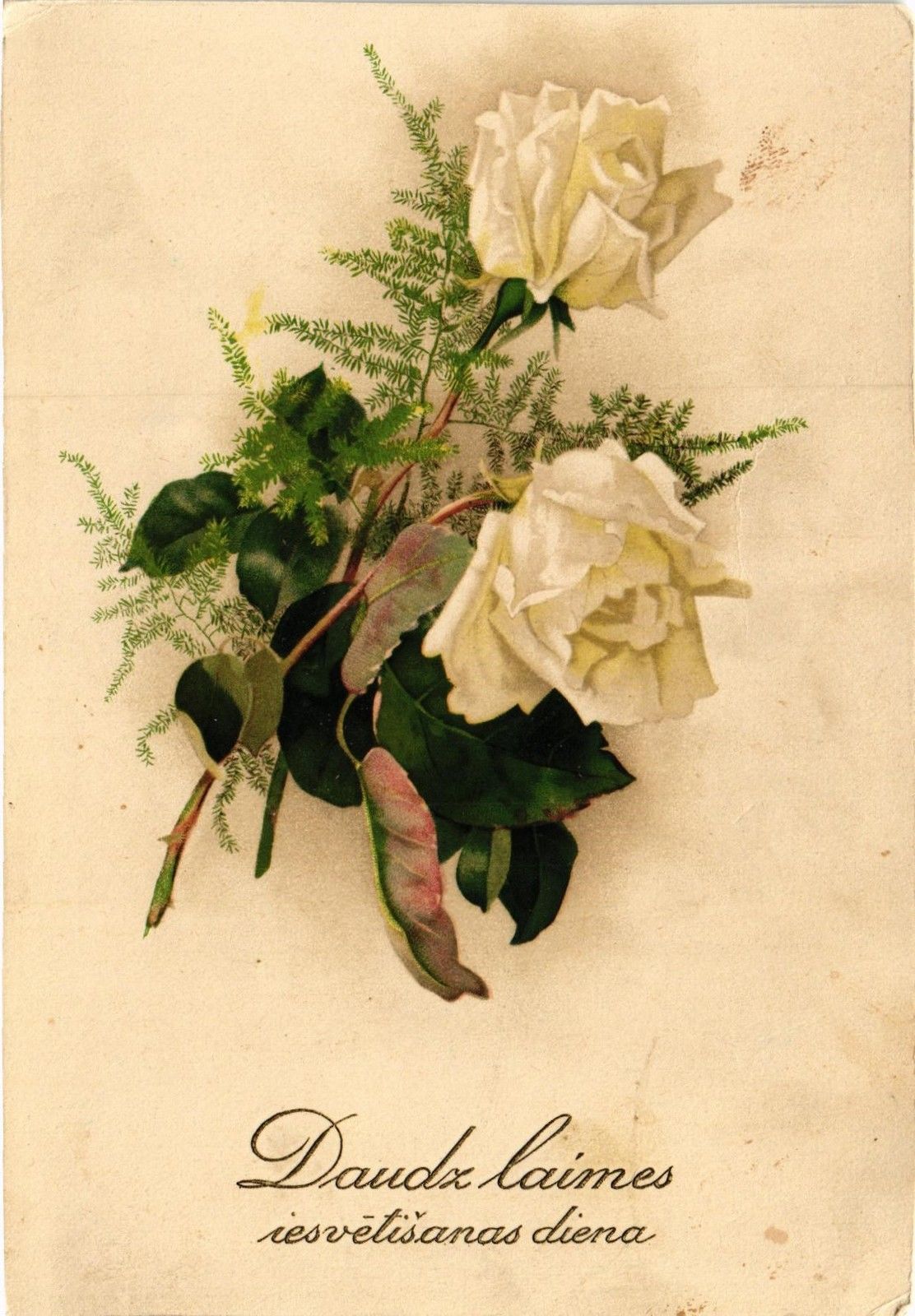 Title (ebay affiliate link): DR JIM STAMPS WHITE ROSE FLOWERS HAPPY DAY LATVIA OVERSIZE POSTCARD