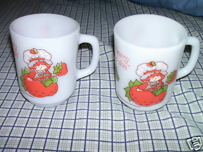 2 STRAWBERRY SHORTCAKE MILK GLASS FIRE KING? MUG LOT