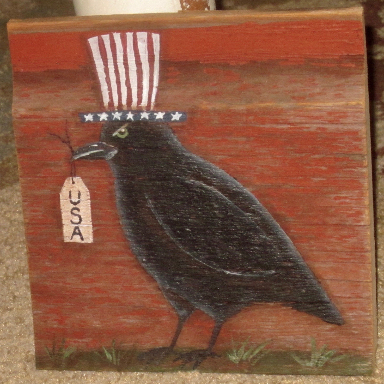 Title (ebay affiliate link): *~*PRIMITIVE*~* HP FOLK ART PRIM AMERICANA CROW *~* OLD RECLAIMED WOOD