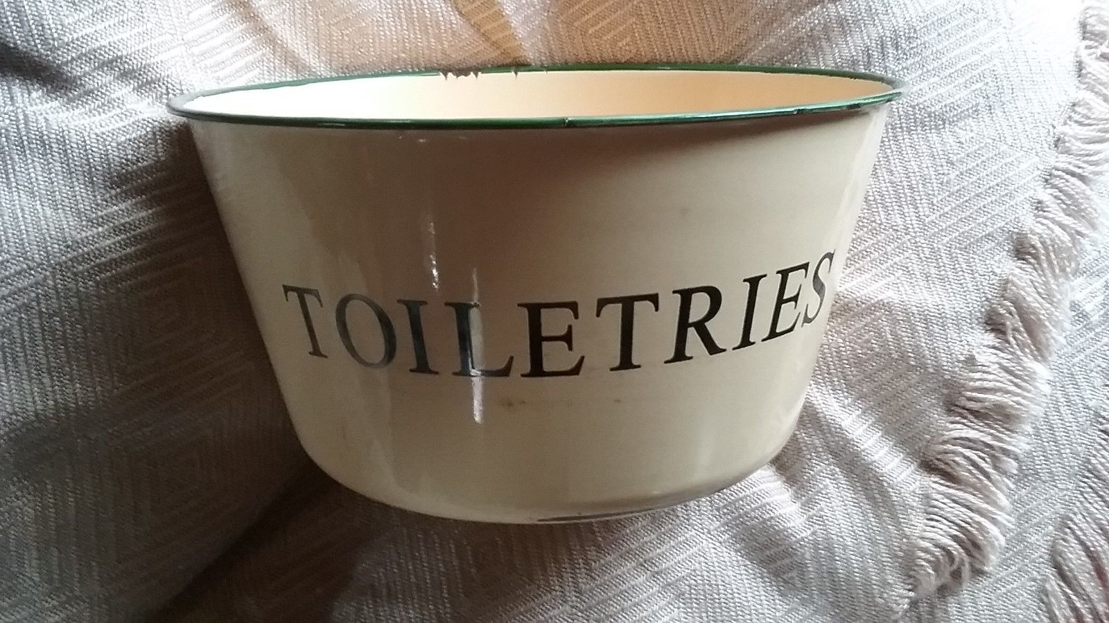 Title (ebay affiliate link): Enamelware Toiletries Bowl!! Farmhouse County Primitive Decor