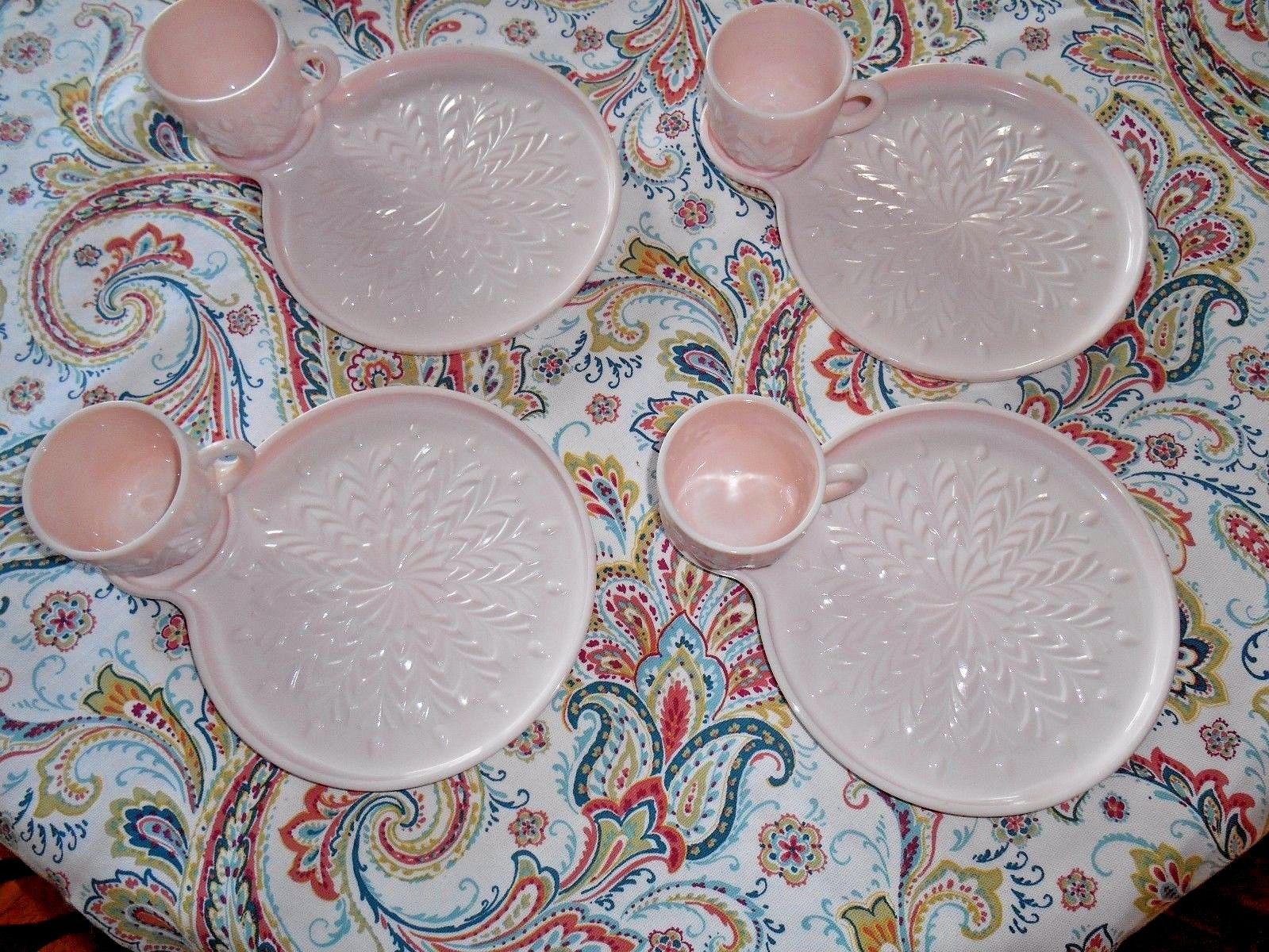 Vintage Jeannette Pink Milk Glass Sandwich Luncheon Set of 4 Feather Pattern
