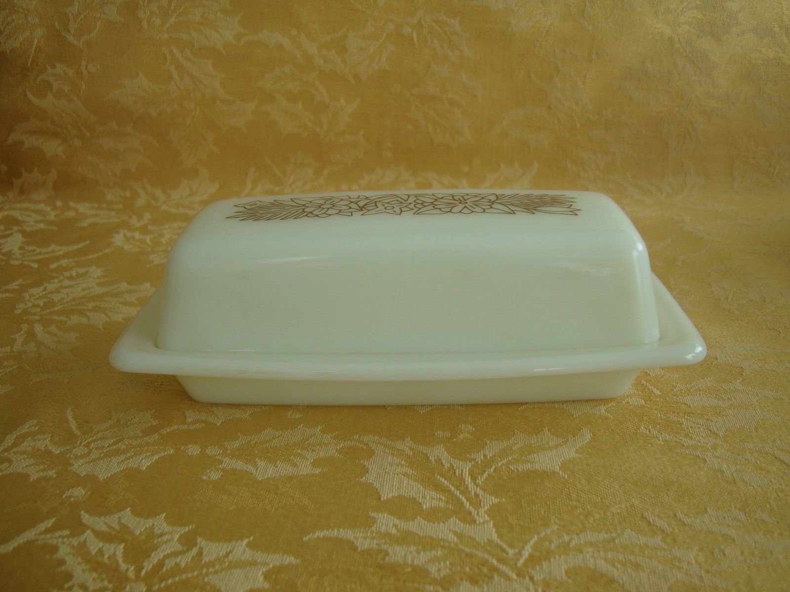 Vintage PYREX Covered Milk Glass Butter Dish with Lid