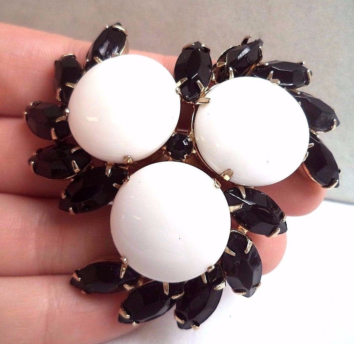 Title (ebay affiliate link): STUNNING VINTAGE ESTATE JULIANA D&E B&W MILK GLASS FLOWER 2 5/8" BROOCH! G6354J
