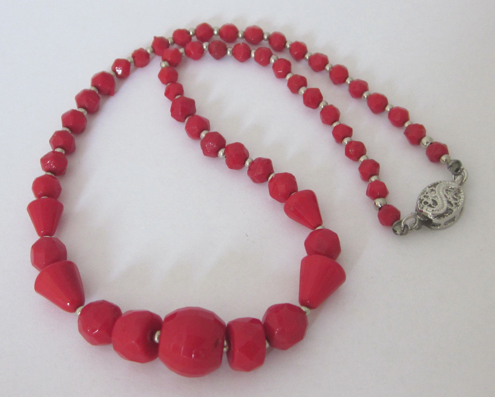 Vintage Faceted Cherry-Red Milk Glass Bead Necklace