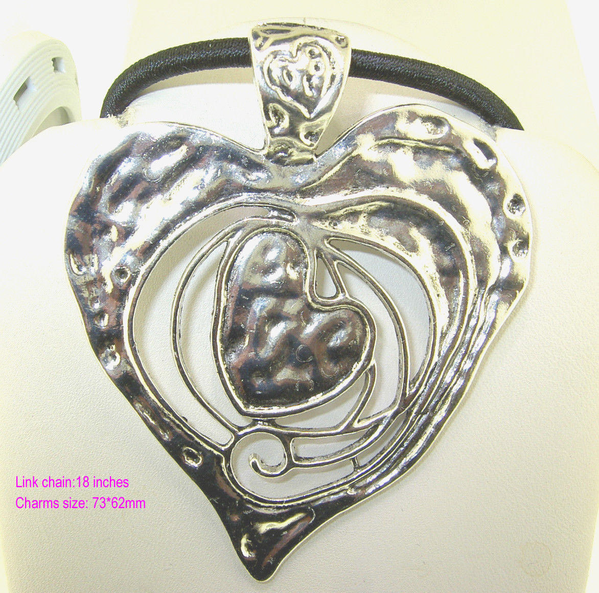 Title (ebay affiliate link): 1 x antique silver new extra large heart within heart pendant beads necklace 18"