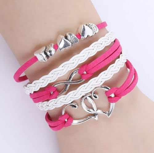 Title (ebay affiliate link): Lucky 8 Hollow Double heart Antique Silver Red Leather Bracelet A01